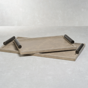 Bellecôte Rectangular Serving Tray – Mink Leather with Alloy Handles